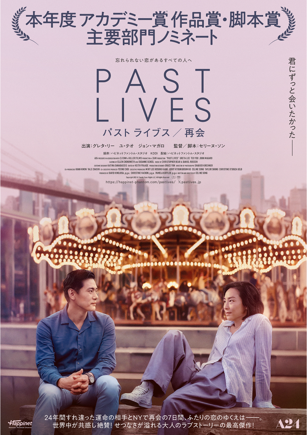 海外移住のため離れ離れになった幼なじみの2人が、24年の時を経てニューヨークで再会する7日間を描いた、アメリカ・韓国合作の大人のラブストーリー。これが長編映画監督デビュー作となるセリーヌ・ソンが、12歳のときに家族とともに海外へ移住した自身の体験をもとにオリジナル脚本を執筆し、メガホンをとった。ノラ役はNetflixのドラマシリーズ「ロシアン・ドール 謎のタイムループ」や声優として参加した「スパイダーマン スパイダーバース」などで知られるグレタ・リー。ヘソン役は「LETO レト」「めまい 窓越しの想い」のユ・テオ。2023年・第73回ベルリン国際映画祭のコンペティション部門出品。第96回アカデミー賞では作品賞、脚本賞にノミネートされた。